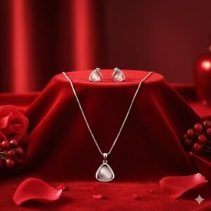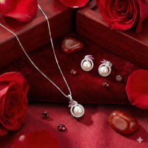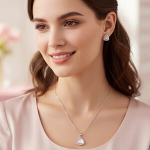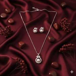 925 Pure Silver Rose Gold Pearl Chain Pendant Set