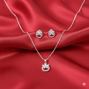 925 Pure Silver Zircon Studded Rose Gold Chain Pendant Set