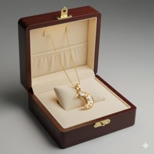 925 Pure Silver Crescent Moon Inspired Chain Pendant For Gir