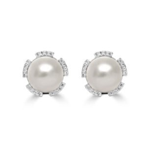 925 Sterling Silver Pearl & Zircon Stone Stud Earrings
