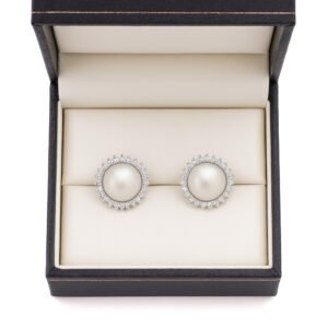 Pure 925 Silver Zircon and Pearl Elegant Stud Earrings