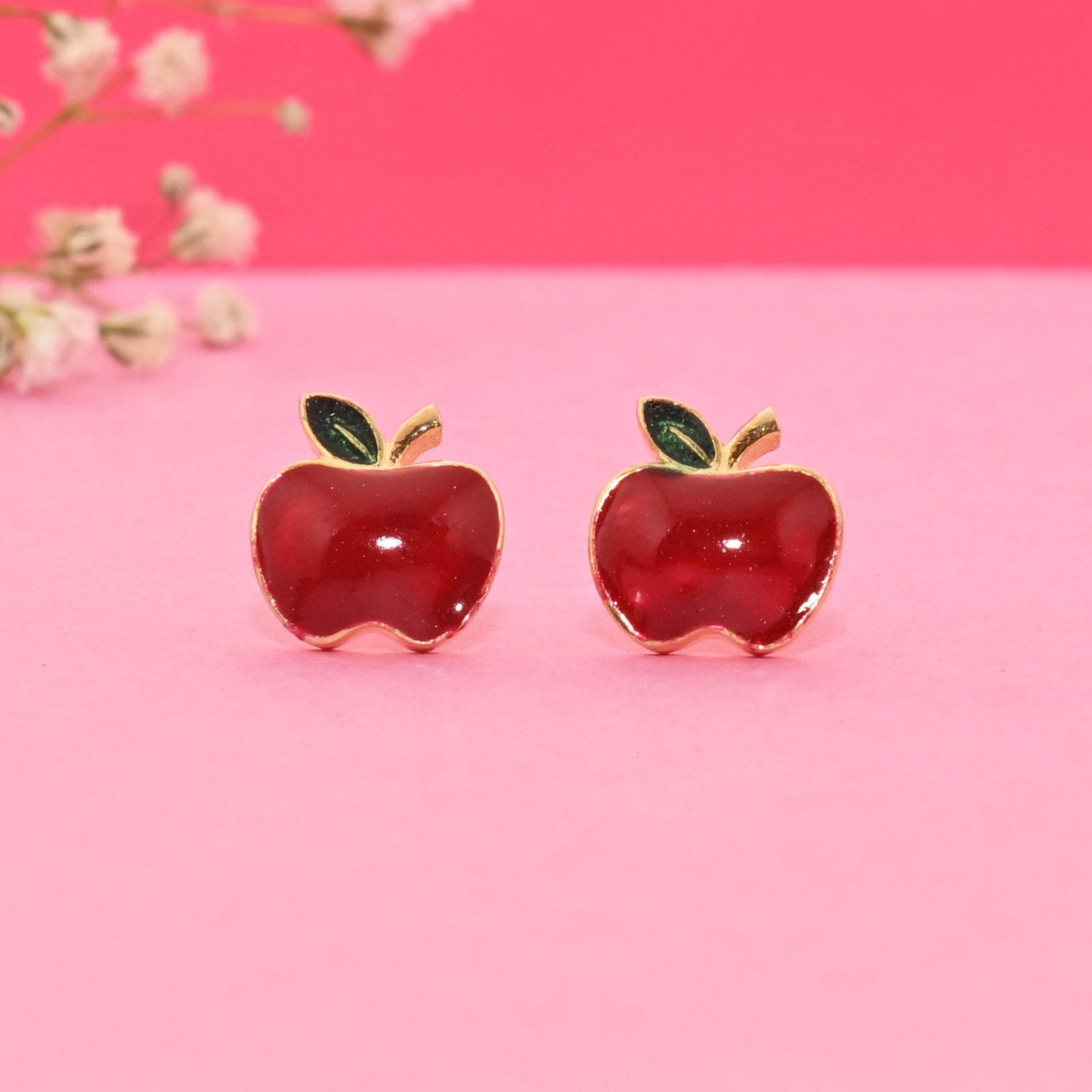 925 Pure Silver Apple Inspired Stud Earrings For Girls and Kids