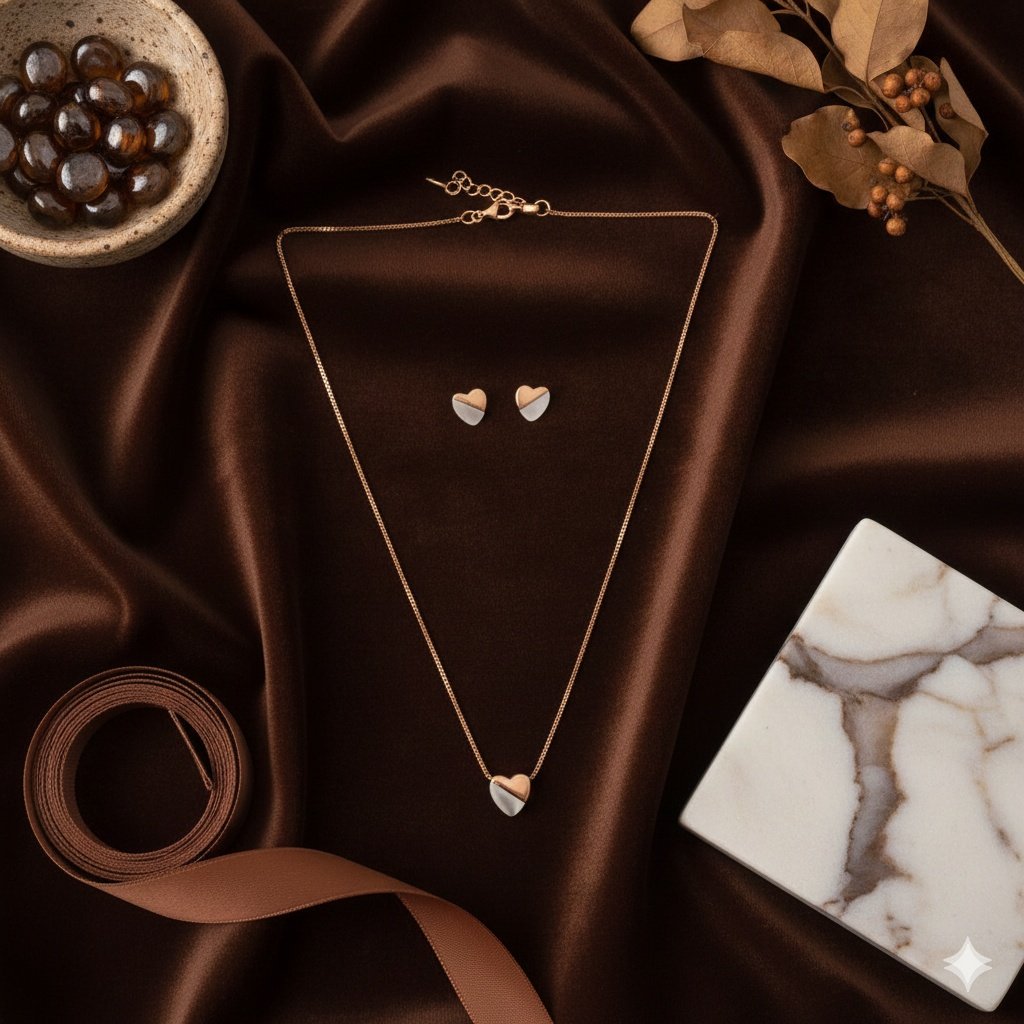 • Features an elegant silver chain with a matching pendant and coordinated earrings