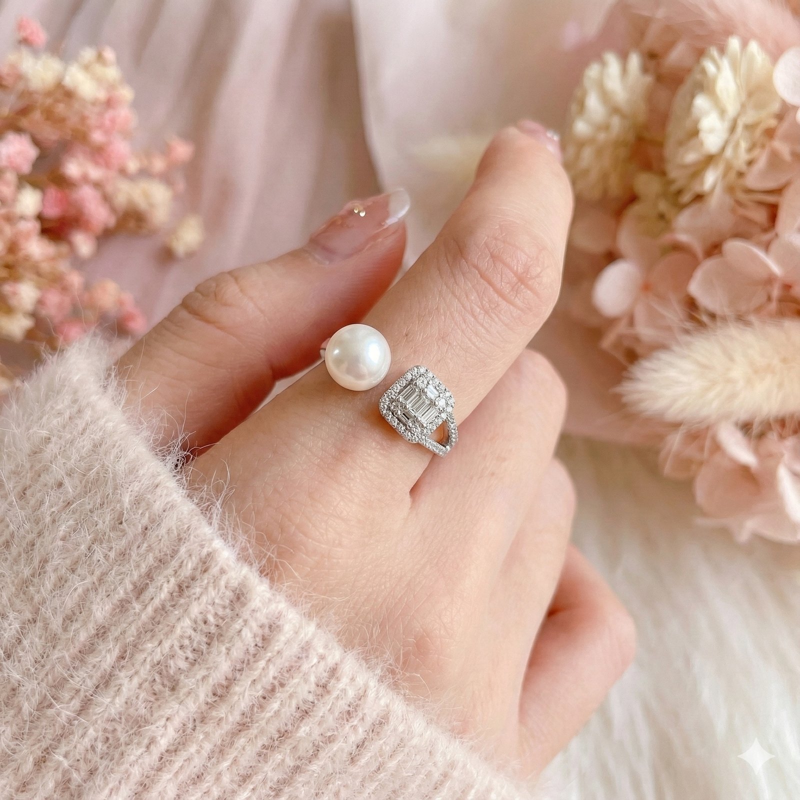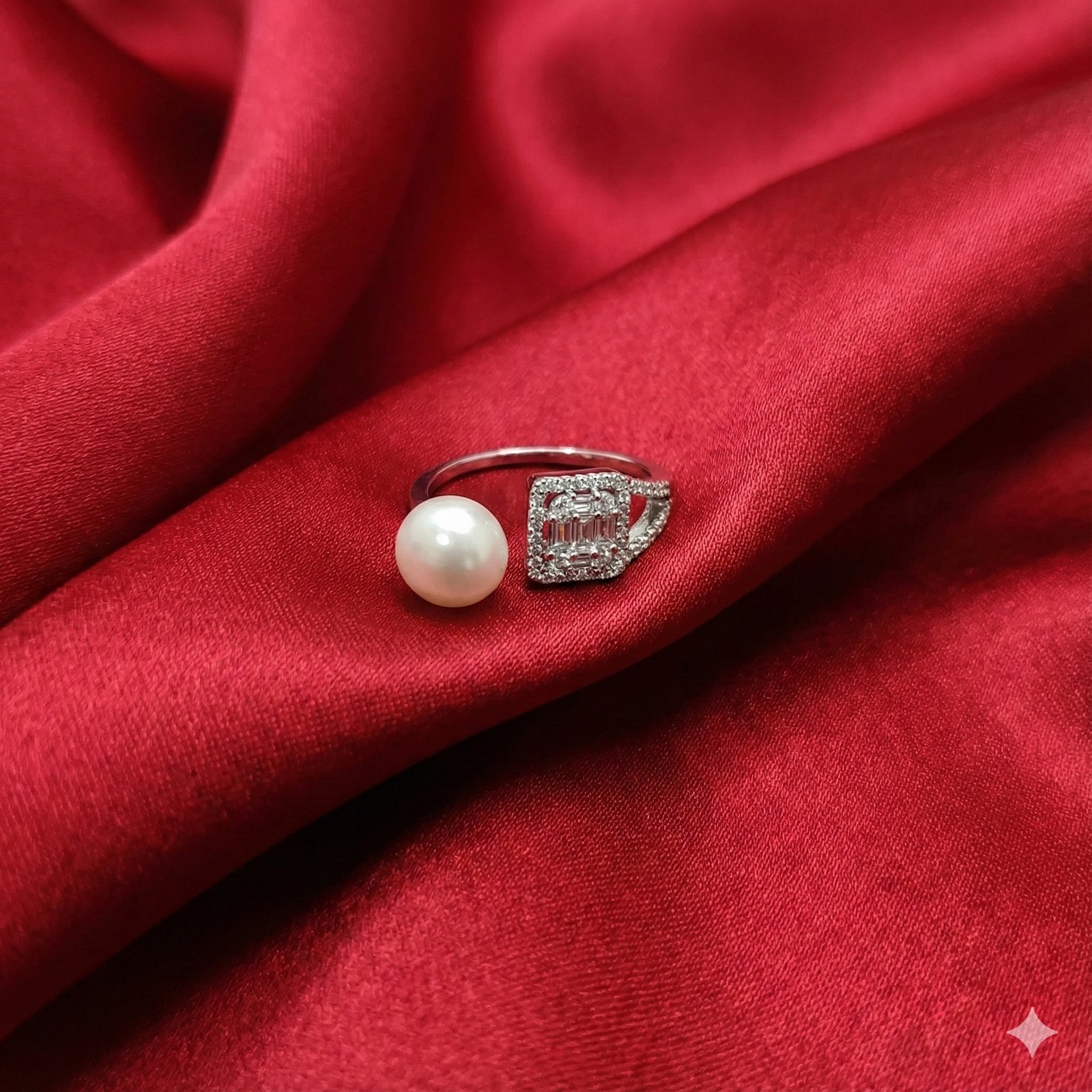 925 Pure Silver Pearl and Zircon Solitaire Ring
