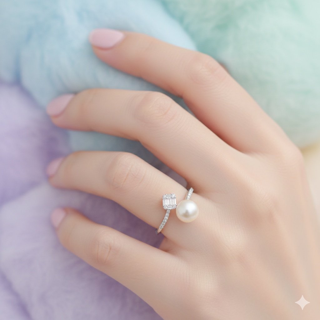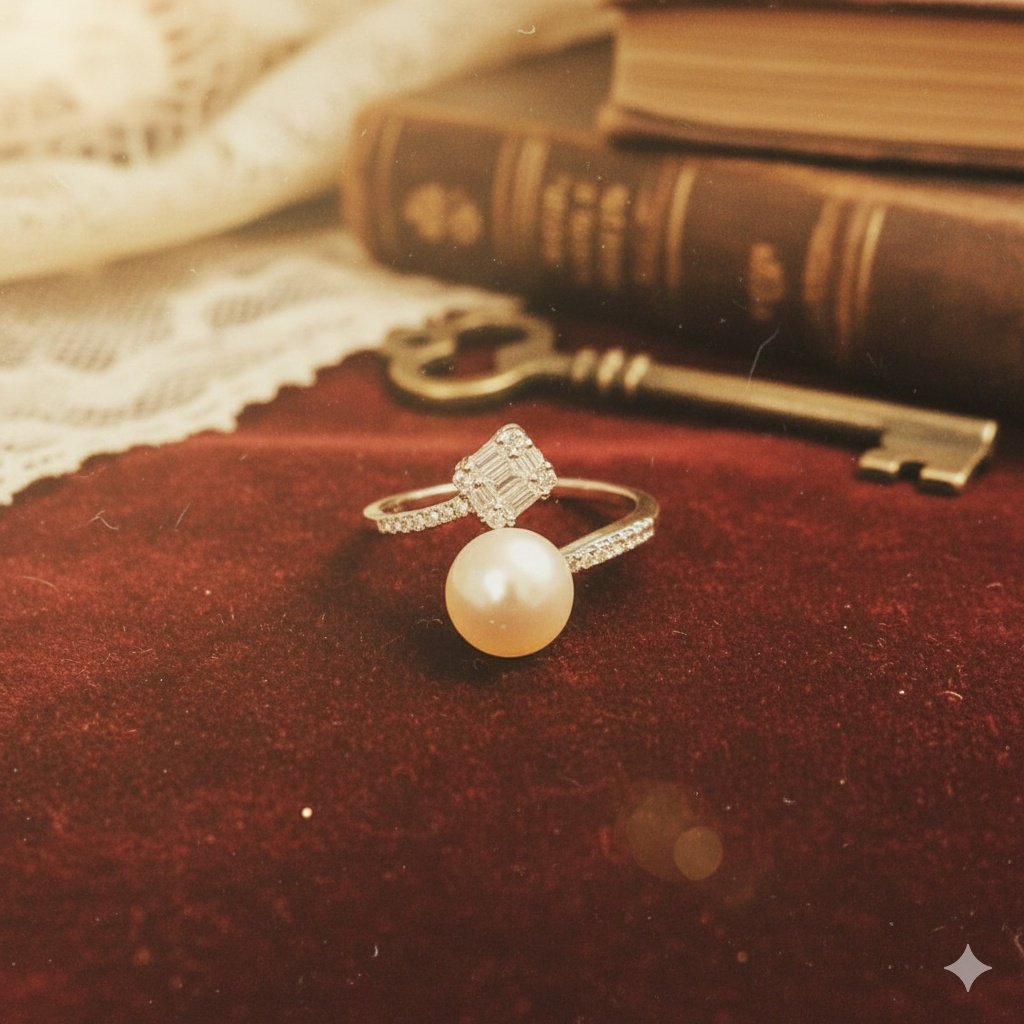 925 Pure Silver Pearl and Zircon Solitaire Ring