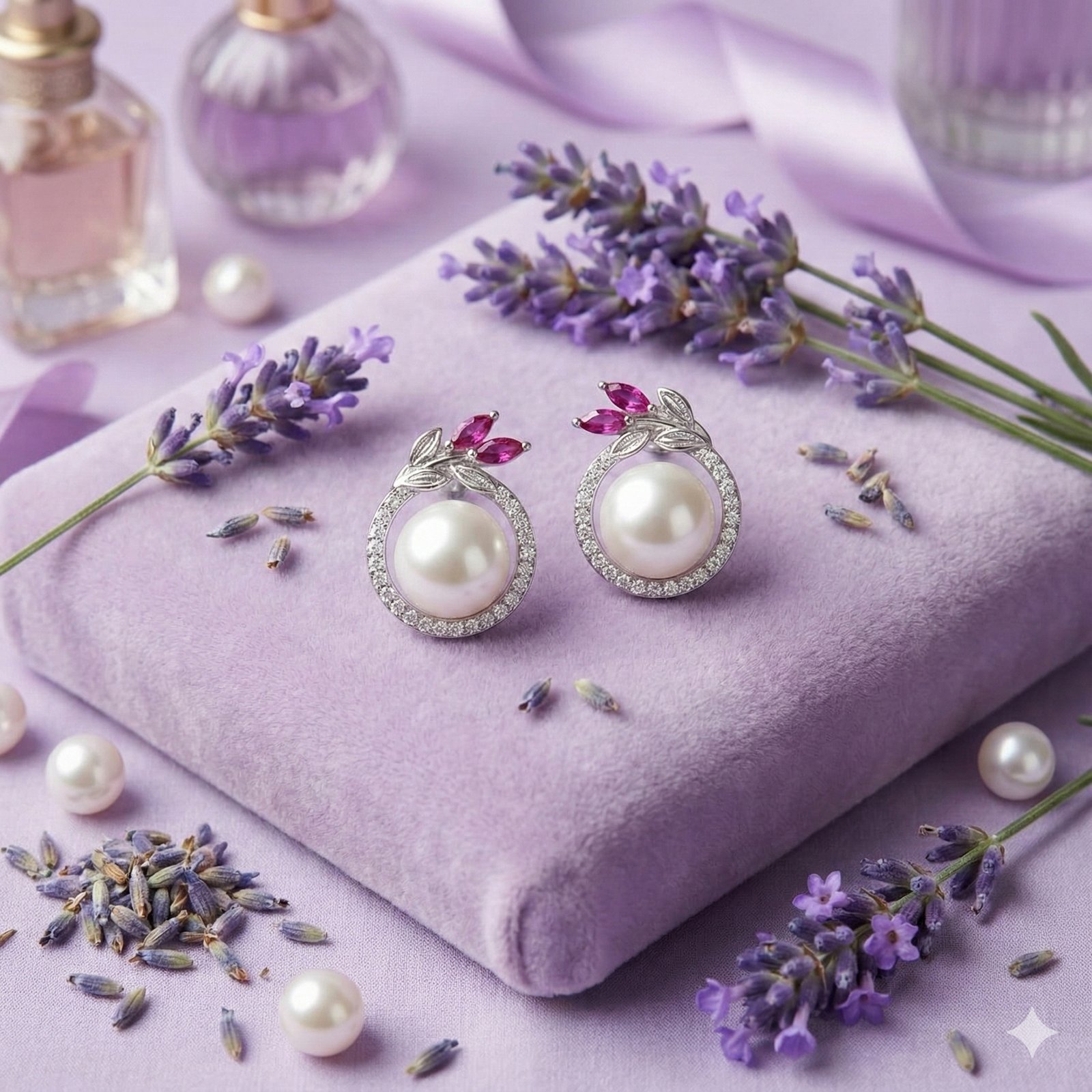 925 Pure Silver Pearl and Zircon Studded Stud Earrings